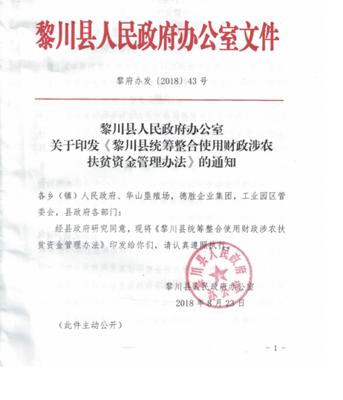 黎川县统筹整合使用财政涉农扶贫资金管理办法