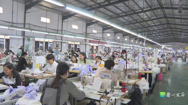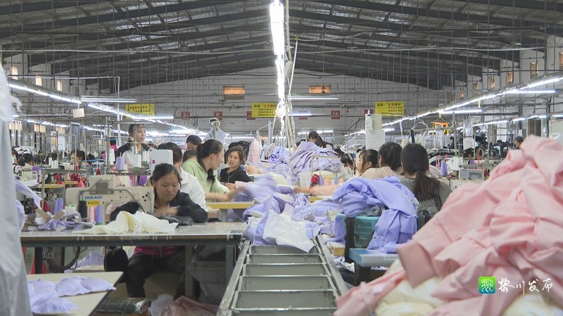 在江西三连制衣有限公司生产车间,记者看到一派火热的生产场景,工人们在车间里有序地忙碌。