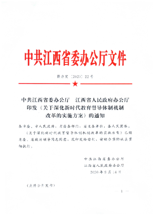 中共江西省委办公厅 江西省人民政府办公厅印发《关于深化新时代教育督导体制机制改革的实施方案》的通知