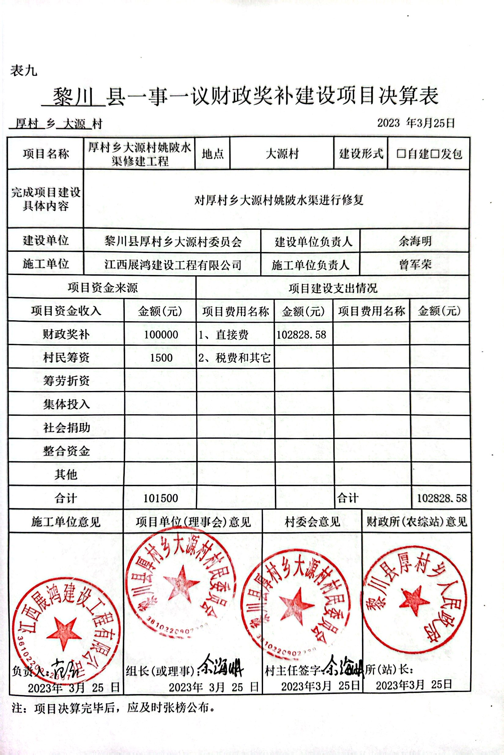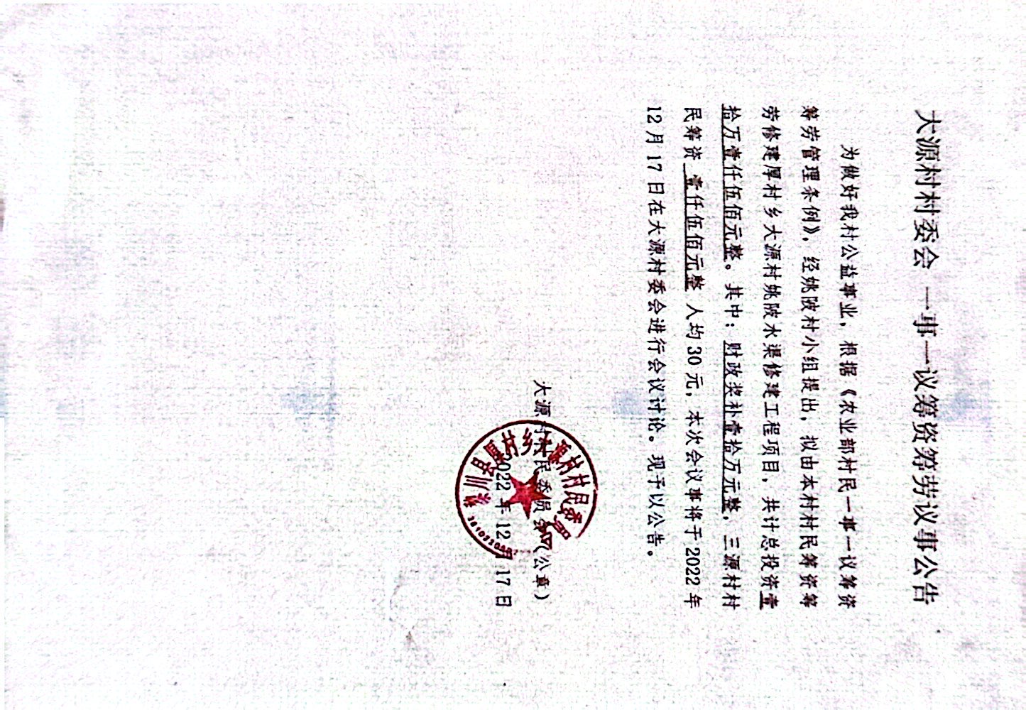 【社会公示】2022年财政一事一议厚村乡大源村姚陂水渠修建工程项目
