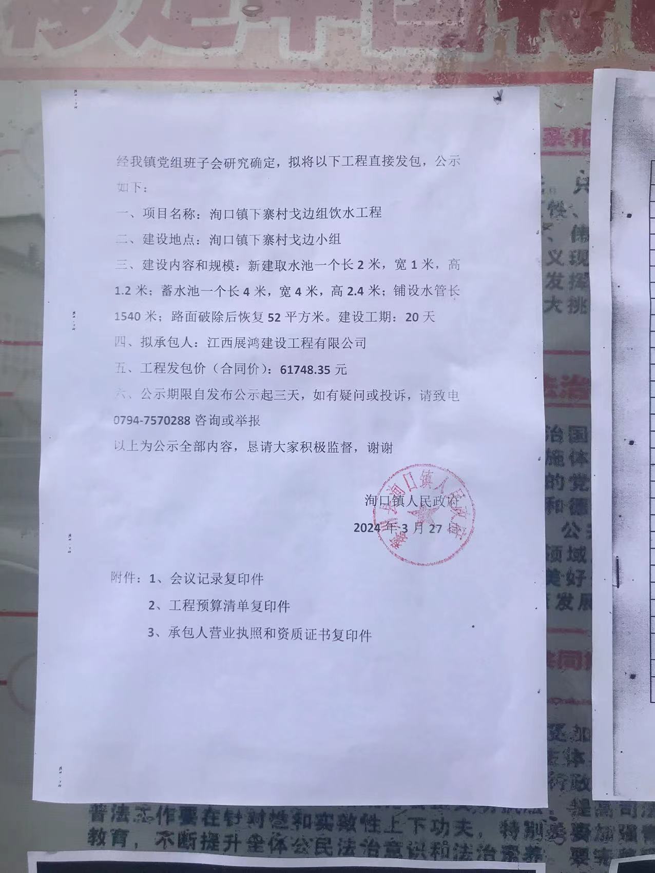 一、项目名称:洵口镇下寨村戈边组饮水工程