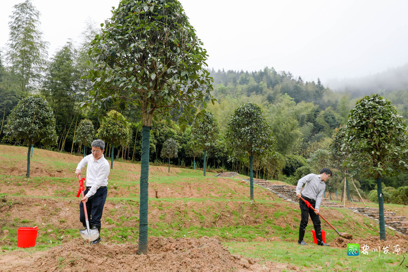 随后,两县领导还一同在杉关生态示范园开展植树活动。