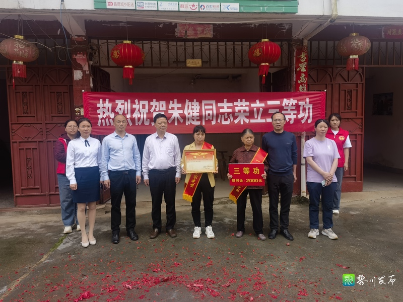 在朱健家中,冯维良送上立功喜报和慰问金,为家属佩戴绶带,感谢他们为国家培养的优秀人才,并希望他们鼓励家人在保家卫国的神圣岗位上再接再厉,积极进取,为家乡父老争光,再立新功。