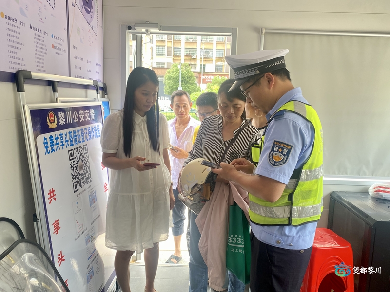 与此同时,交警积极引导未佩戴头盔骑乘者扫码免费租借安全头盔,做到安全文明出行。
