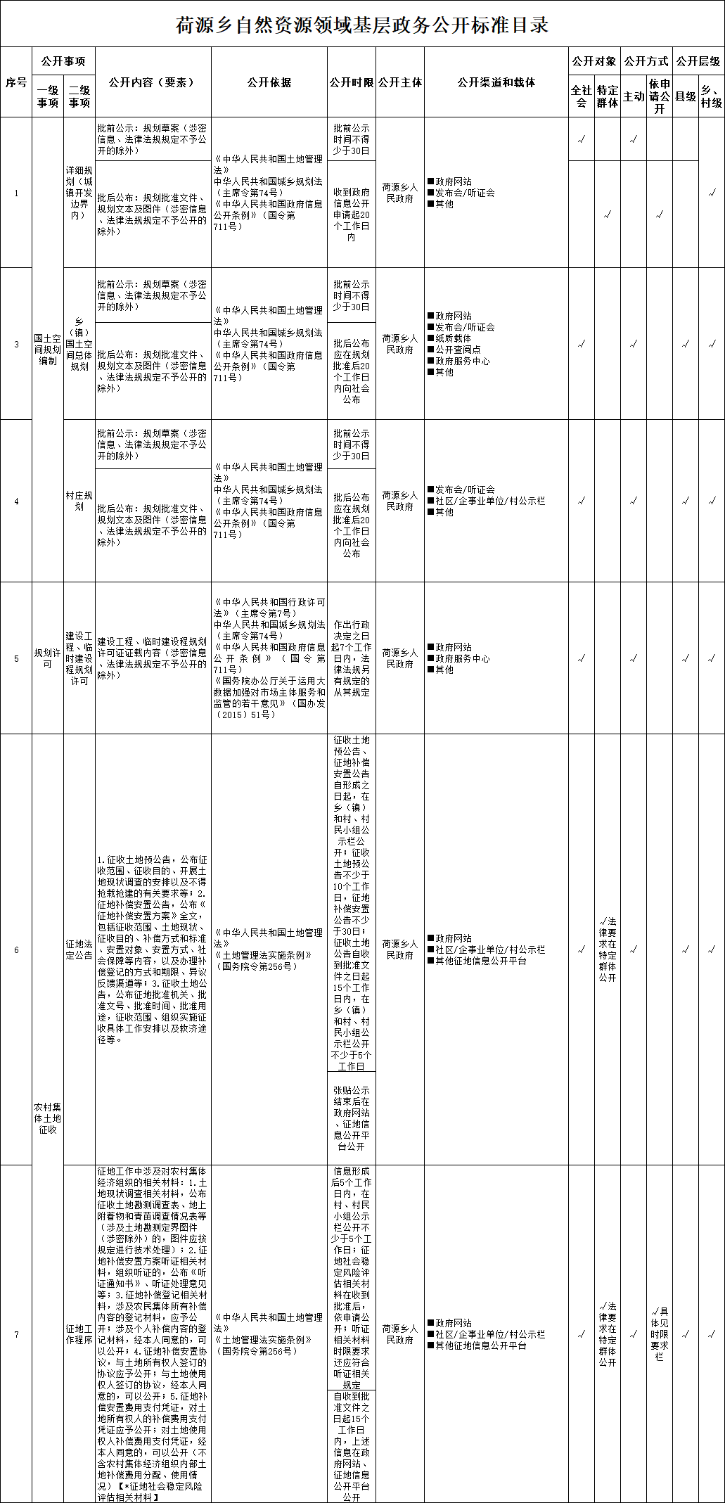荷源乡自然资源领域基层政务公开标准目录