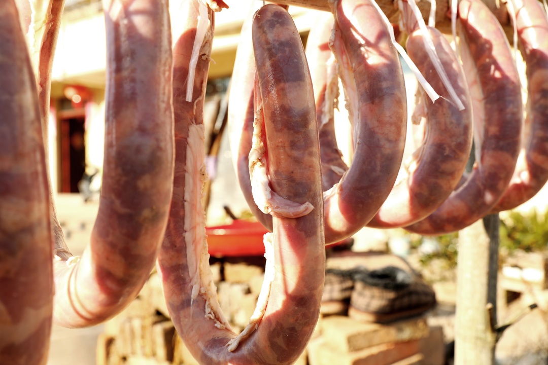 在回上村,灌香肠不仅是节日的美食准备,更是一种世代传承的文化习俗。一大早,村民们便开始忙碌起来,他们精选上等猪肉,经过精心切割、腌制,准备开始一年的香肠制作之旅。家家户户的院子里都弥漫着诱人的肉香,那是年的味道,是家的味道。