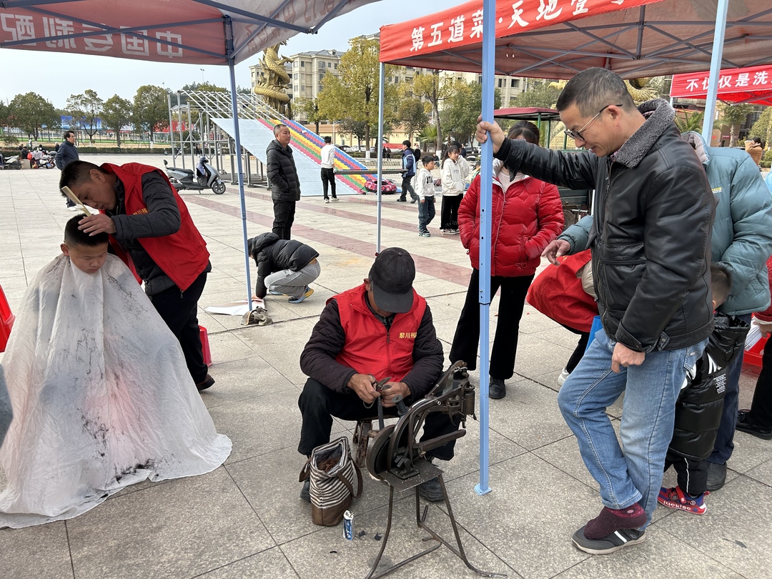 在锣鼓喧天的活动现场,舞白狮让大家近距离感受了非遗文化的独特魅力,领略了传统文化的博大精深。除了精彩纷呈的节目,各类独具特色的文明集市摊位也面向群众开放,黎川特色美食擂茶、灌芯糖展示以及送春联、义剪、应急演练、知识问答等各类志愿服务项目让广大市民在欢乐祥和、热烈喜庆、文明和谐的氛围中感受到浓浓的年味。