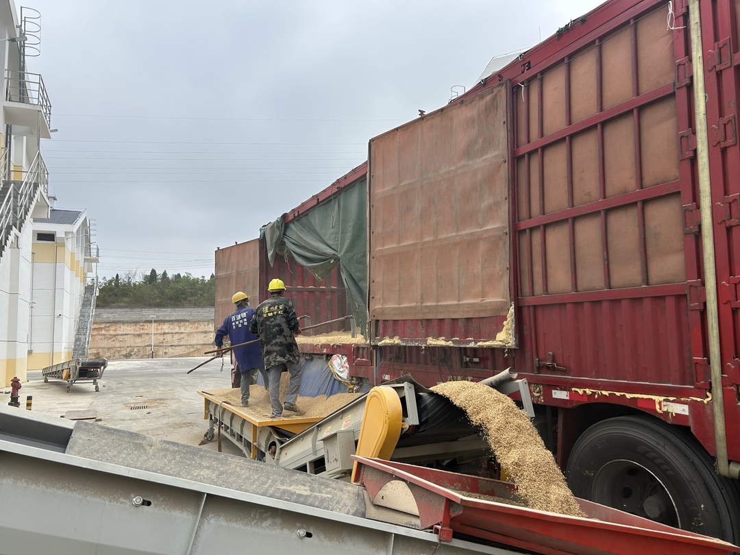 当前正值秋粮收购旺季,县粮食收储有限责任公司内一派繁忙景象。在中心粮库,满载新粮的运输车辆有序停靠,工作人员正紧张地进行粮食入库作业。截至目前,中储粮在我县收购托市粮约4500吨,目前入库工作正稳步推进。