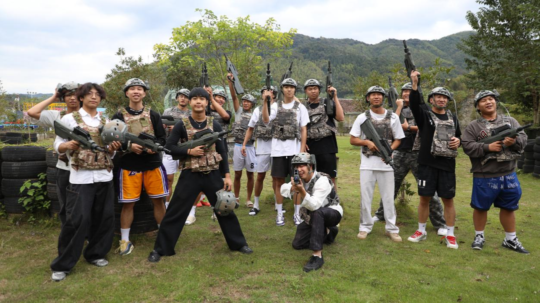 参观结束后,队员们转战户外真人CS基地,展开了一场别开生面的拓展训练。身着迷彩装备的球员们迅速分为两队,在模拟战场上展开激烈对抗。平日在篮球场上运球突破的矫健身手,此刻化身战术穿插的敏捷身影,掩体后方精准的"狙击",丛林中默契的小组配合,每一次成功的战术包抄都引来阵阵欢呼。这场特别的拓展活动不仅缓解了大赛的紧张压力,更在实战对抗中进一步锤炼了队员们的团队协作和临场应变能力。