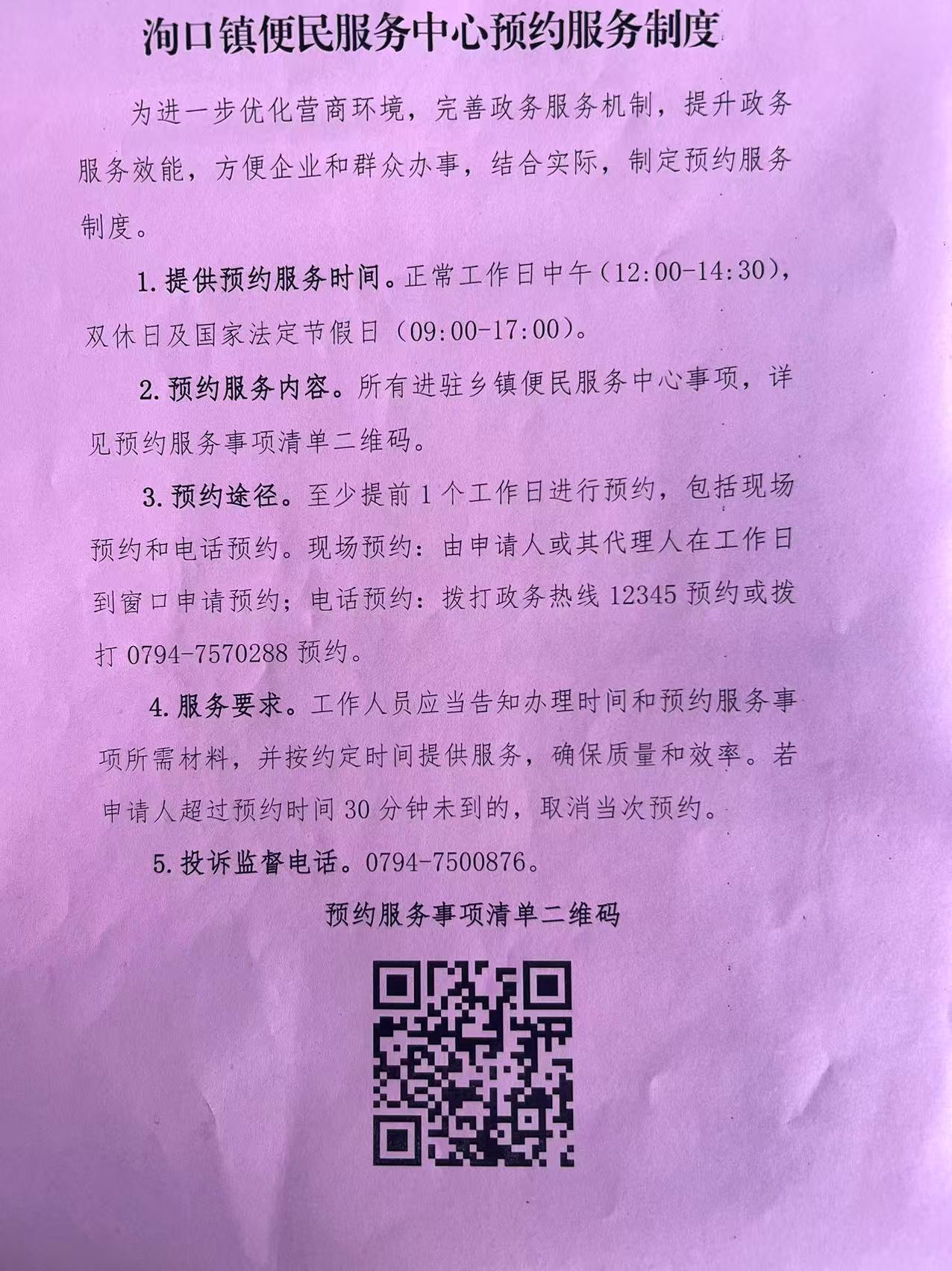 泃口镇便民服务中心预约服务制度