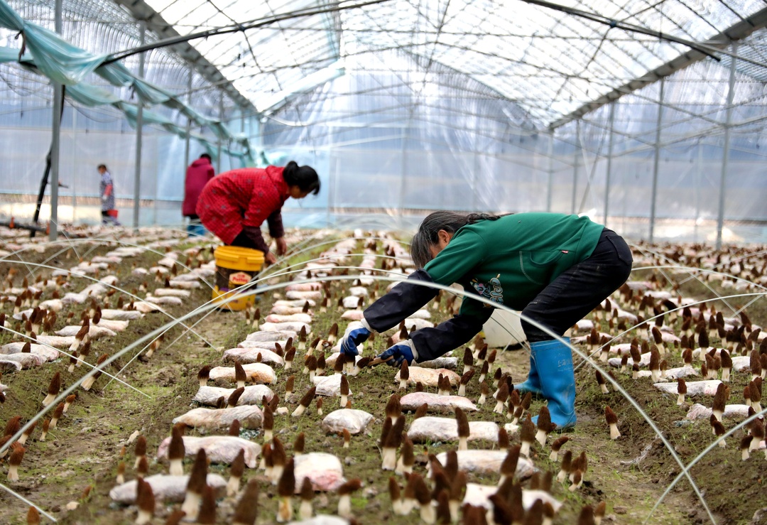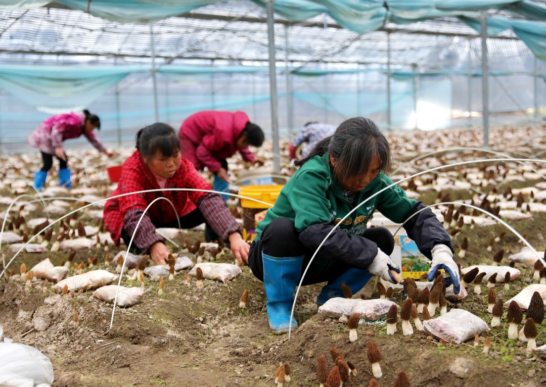 随着天气逐渐回暖,近日,我县各地羊肚菌种植基地迎来了首批羊肚菌的丰收。