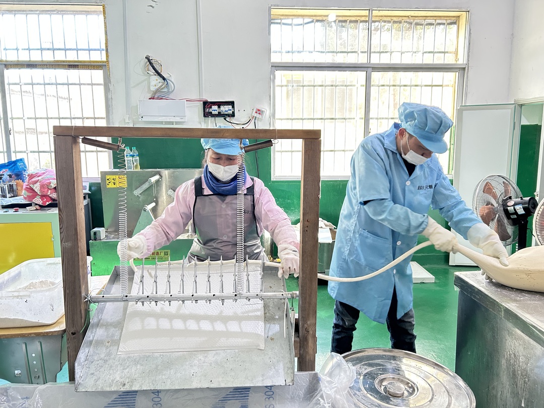“我们一天生产500斤成品灌芯糖。我们从去年11月下旬就接到了顾客订单,线上线下都有,订单通常会持续到元宵。”江西思成食品有限公司负责人李荣光说道。