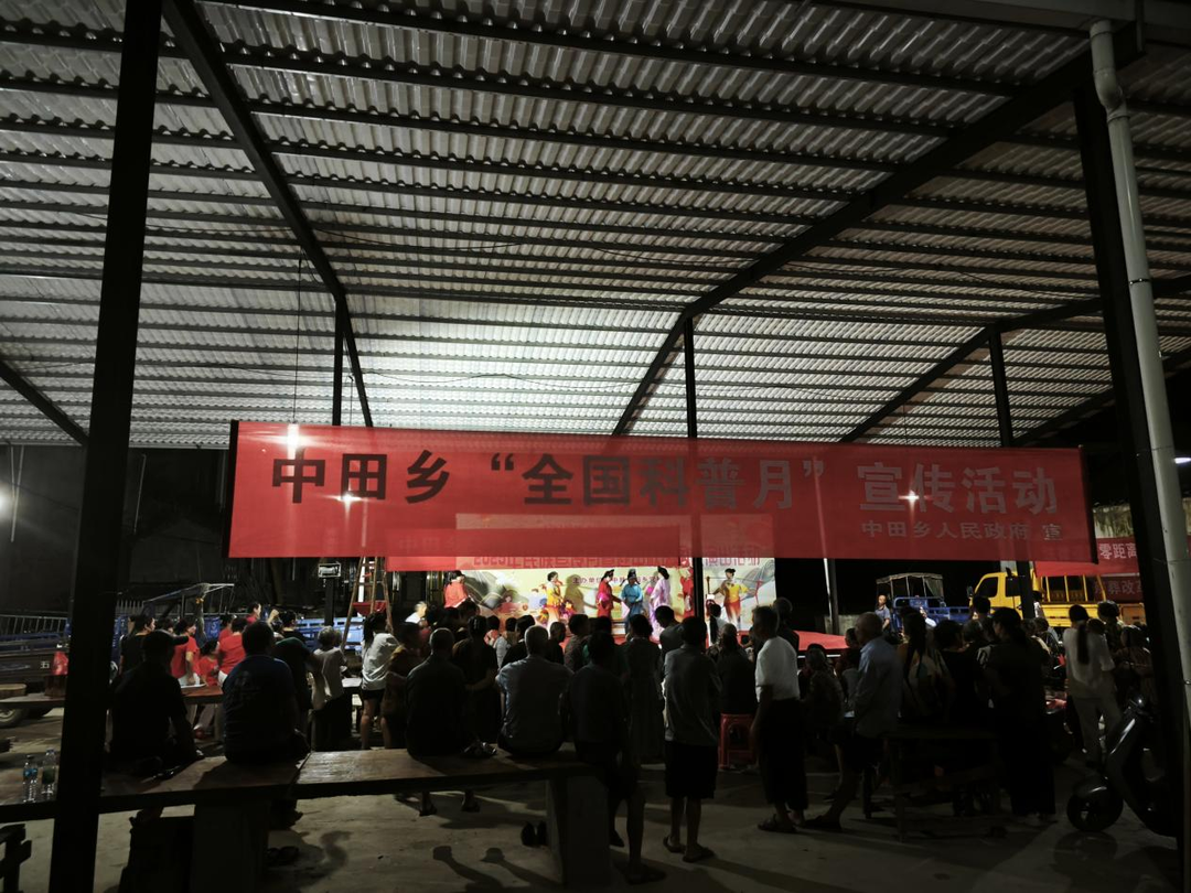 中田乡结合民族宣传月暨迎中秋庆国庆演出活动,在辖区内开展“全国科普月”宣传活动。