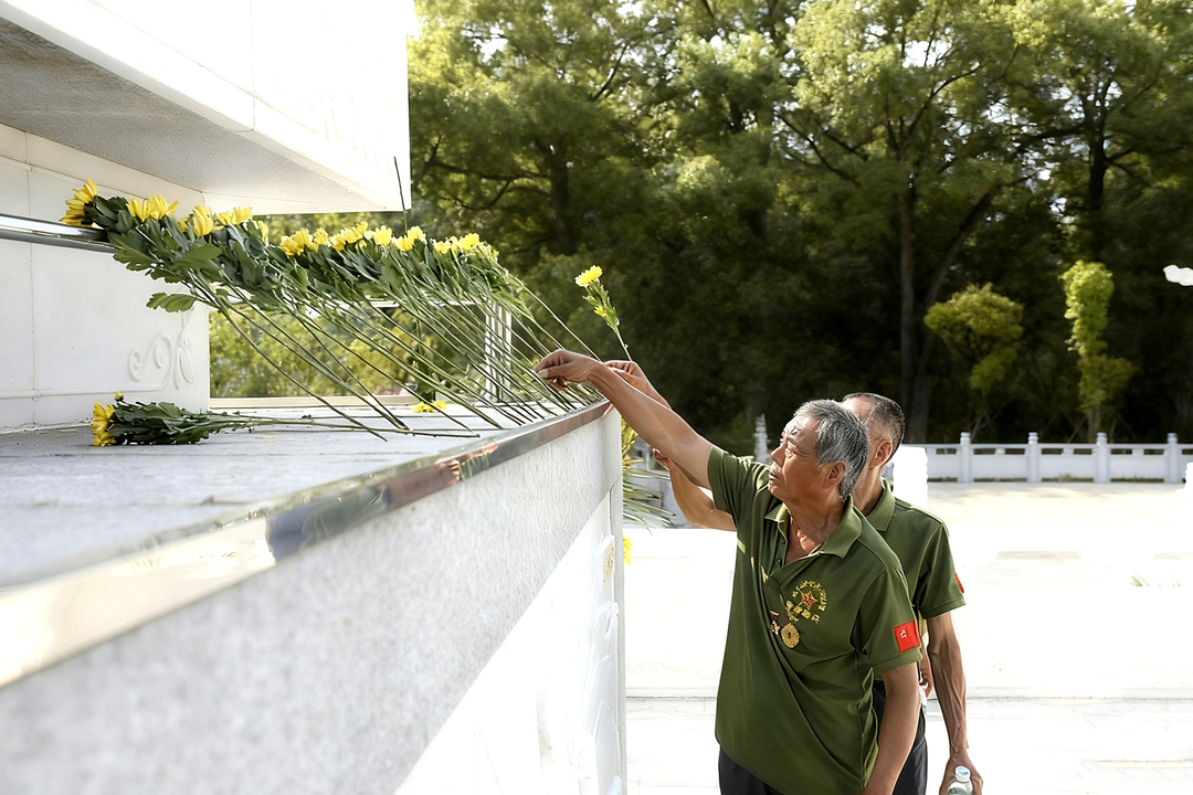 花篮安放完毕后,县委书记郑锦锋来到烈士纪念碑前仔细整理花篮缎带。全体人员绕纪念碑一周,将一束束鲜花轻轻放在烈士纪念碑前,表达对革命先烈的无限敬仰和深切怀念。