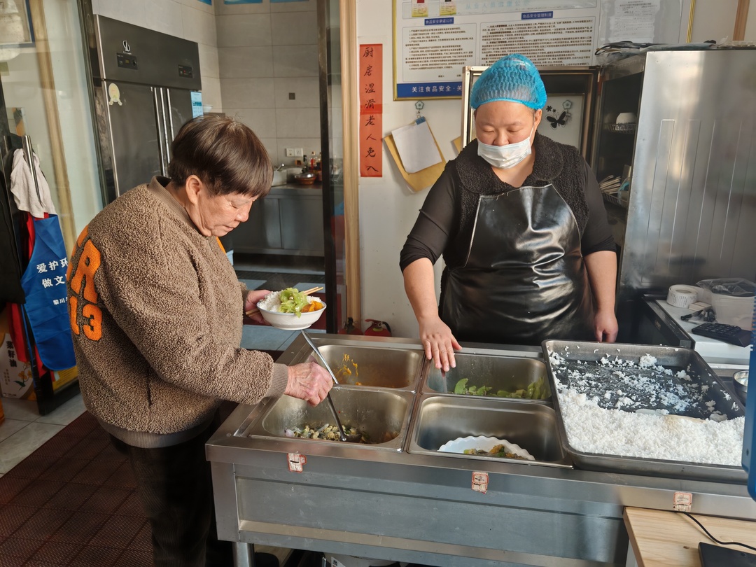 就餐老人简如仙表示:“我们在这里吃饭很开心,每天可以聊聊天,平时社区还为我们搞活动,逢年过节加餐,我们很舒服,心里很快乐。我们这个年龄,小孩都在外面,(在这里)能碰到邻居(一起吃饭)很高兴。”