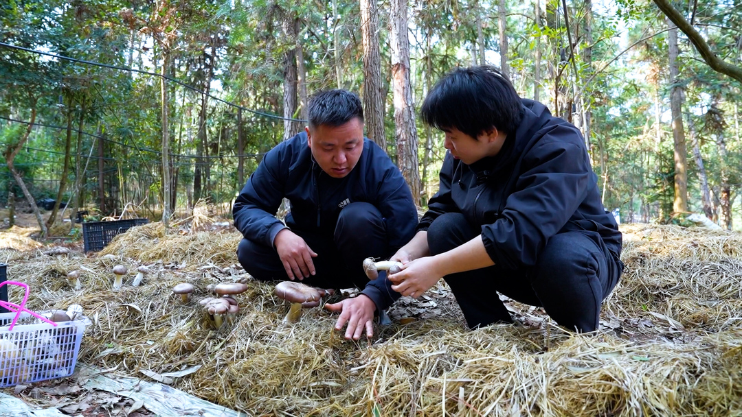 龙安镇赤松茸基地负责人杨寅峰:根据我们当地的气候与林下的一个种植环境,首先,我们从菌种的培育、栽培料的机制进行优化,我们采用的是无土栽培。然后,结合了微喷保湿的一个环境种植与出菇环境的一个调控等方面,让出菇更加集中,让采收有明显的提升。