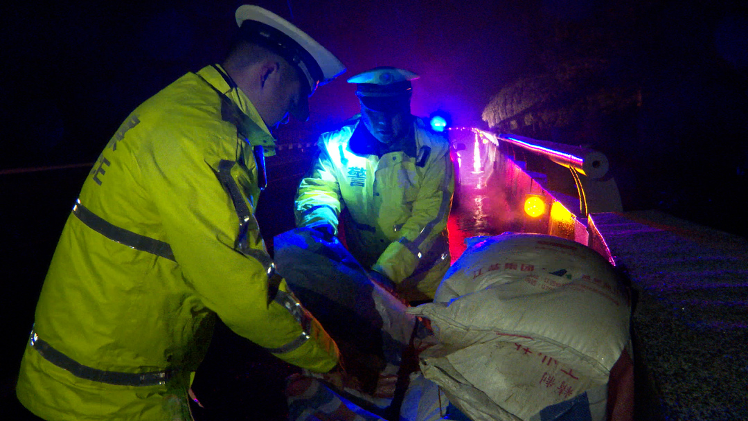 夜色深沉,寒风裹着碎雪扑打路面,高速交警巡逻车与融雪作业车并肩协同作业,筑牢寒夜道路安全防线。巡逻车点亮警灯,红蓝光影在雨雪中闪烁,划出安全警示信号;融雪车轰鸣前行,喷洒的融雪颗粒快速消融在路面,警灯与作业车灯交相辉映,为群众开辟出安全通道。