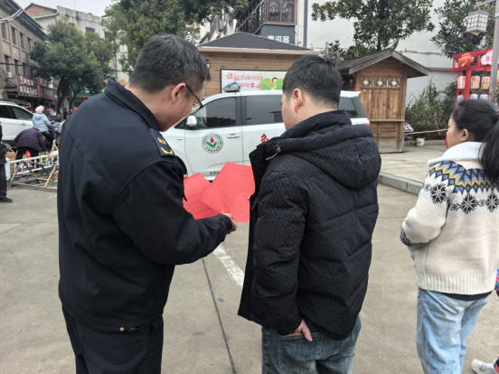 行动中,工作人员组成联合宣传队,聚焦沿街商铺、流动商贩及居民区等人流密集区域,通过发放宣传折页、现场讲解等形式,向居民群众详细解读禁燃禁放区域划分及相关管理规定。同时,深入商铺、摊位,面对面提醒商户严禁非法销售烟花爆竹,从源头杜绝安全隐患。