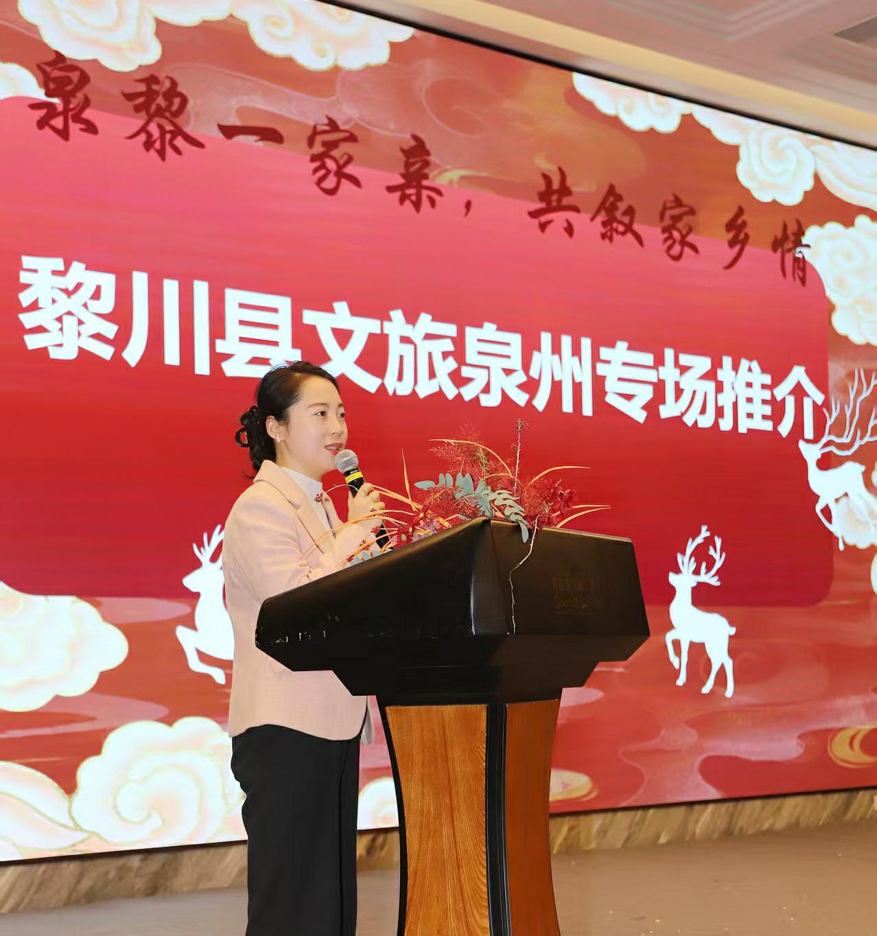 2026年1月29日,黎川县文广旅局借泉州市黎川商会第一届工会会员(代表)大会暨全民运动会之际,在泉州举办以“泉黎一家亲 共叙家乡情”为主题的文旅专场推介会。黎川县文广旅局党组书记黄慧娟进行了文旅推介,诚邀在泉企业家共叙乡情、共商合作。