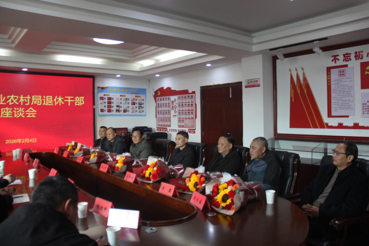 2月4日,县农业农村局举行退休干部座谈会,邀请2025年度退休的7位老同志重回“娘家”,共叙情谊、畅谈发展。局党组书记、局长朱华主持会议并讲话,局领导班子成员、相关科室负责人及年轻干部欢聚一堂,共叙情谊,共话发展。