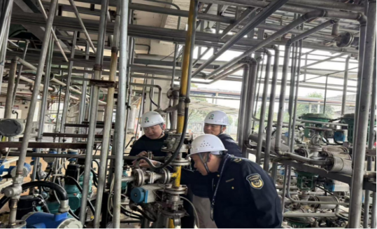 检查中,检查组同步推进资料台账审查与生产现场核查。资料审查环节,重点核查企业复工复产方案及安全确认清单、全员安全培训档案、特种设备校验报告、应急预案及演练资料等核心内容。现场核查环节,深入生产装置区、储罐区、危化品库房、中控室等关键场所,重点核查安全联锁运行、工艺参数管控、设备设施维护等落实情况。对排查出的隐患当场反馈,溯源分析根源,全程指导企业闭环整改。