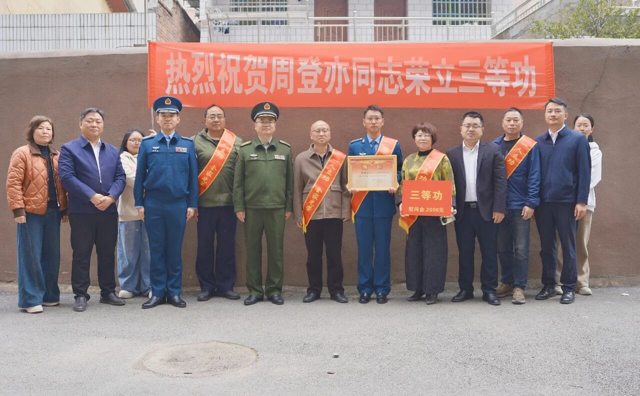 军功耀故里,喜报暖人心。为弘扬拥军优属优良传统,让军人军属共享荣光、感受尊崇,3月16日,县委常委、县人武部政委罗峰,副县长许志标为我县荣立三等功的现役军人周登亦和家属送上立功喜报。