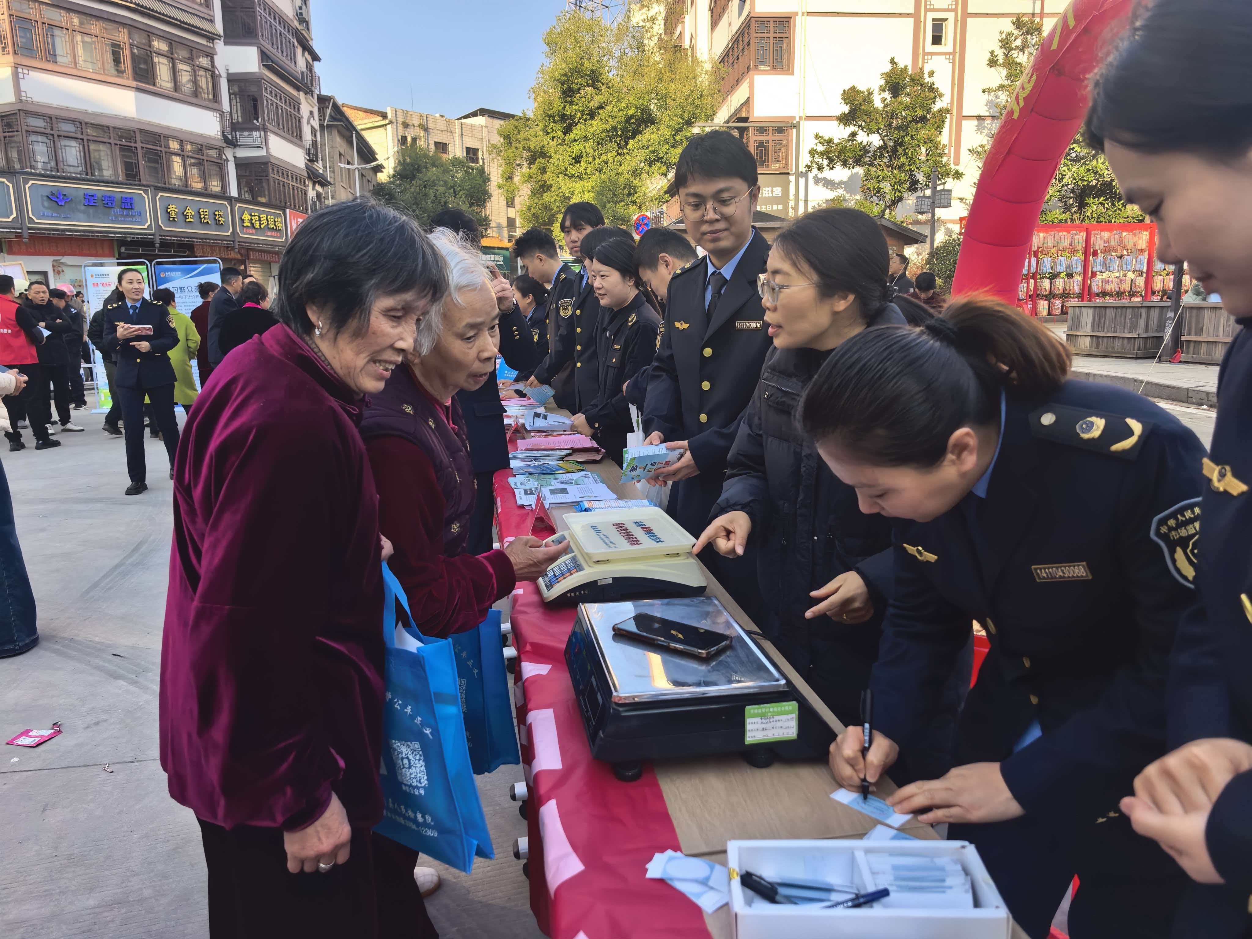 创新监管服务,破解民生痛点。开展“手机变砝码 消费更称心”活动,为群众的手机免费称重并粘贴重量标签,使其成为便携“标准砝码”,便于消费者现场监督商户计量准确性。开展“近视防控,计量在行动”系列活动,组织专业人员进校园、进社区,为师生、居民提供免费验光、眼镜检测及用眼咨询,累计服务300余人次,在学校设置5轮互动问答环节,发放小礼品10余件,发放宣传材料200余份。
