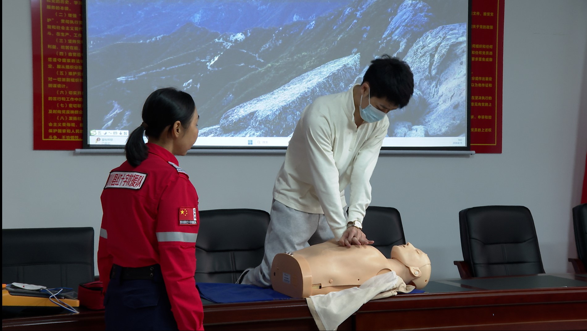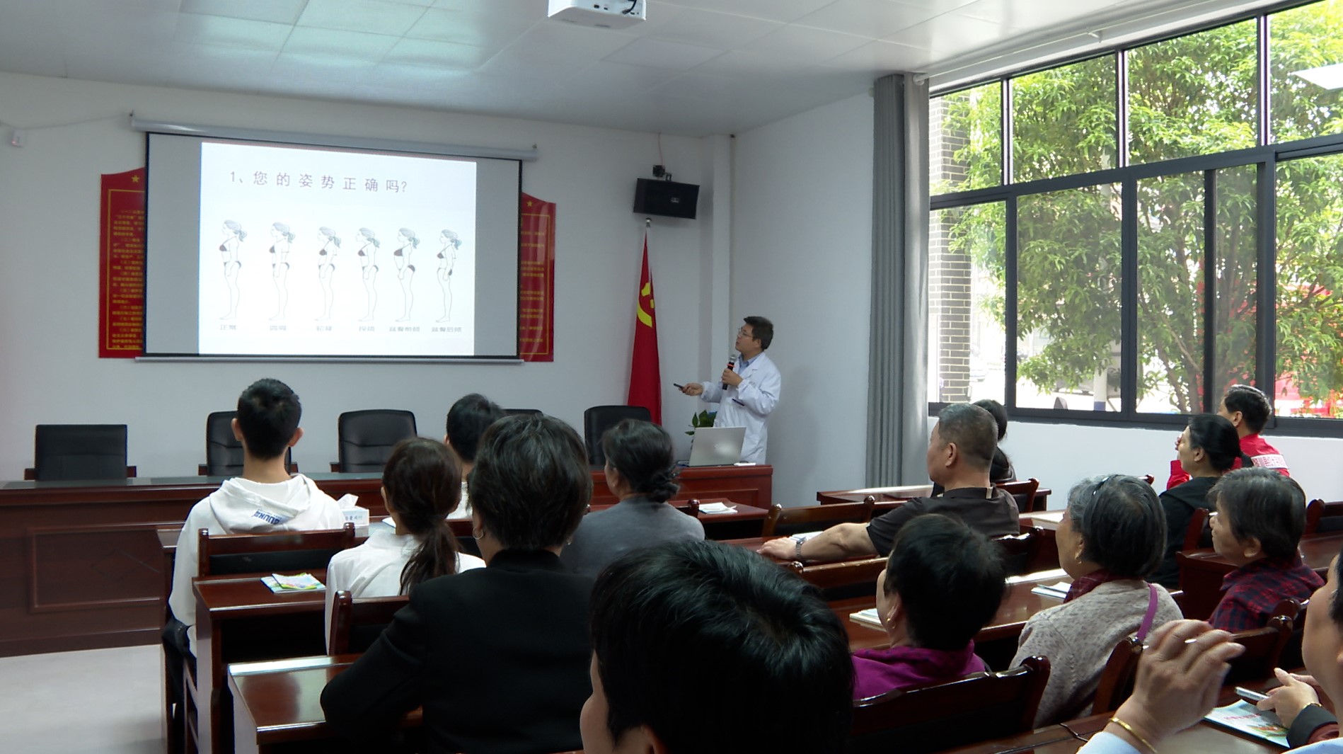 活动现场,红十字志愿者化身“急救讲师”,通过人体模型细致讲解心肺复苏的标准流程。居民们认真聆听,主动上手实操,切实掌握了关键时刻救命技能。县中医医院的医生围绕现代人高发的颈椎问题,结合日常起居、工作习惯,开展健康知识科普讲座,详细讲解预防与养护要点,耐心解答群众关于颈肩腰腿痛的各类疑问,并提供专业的中医养生建议。县科协同步发放科普资料,普及科学健康知识。
