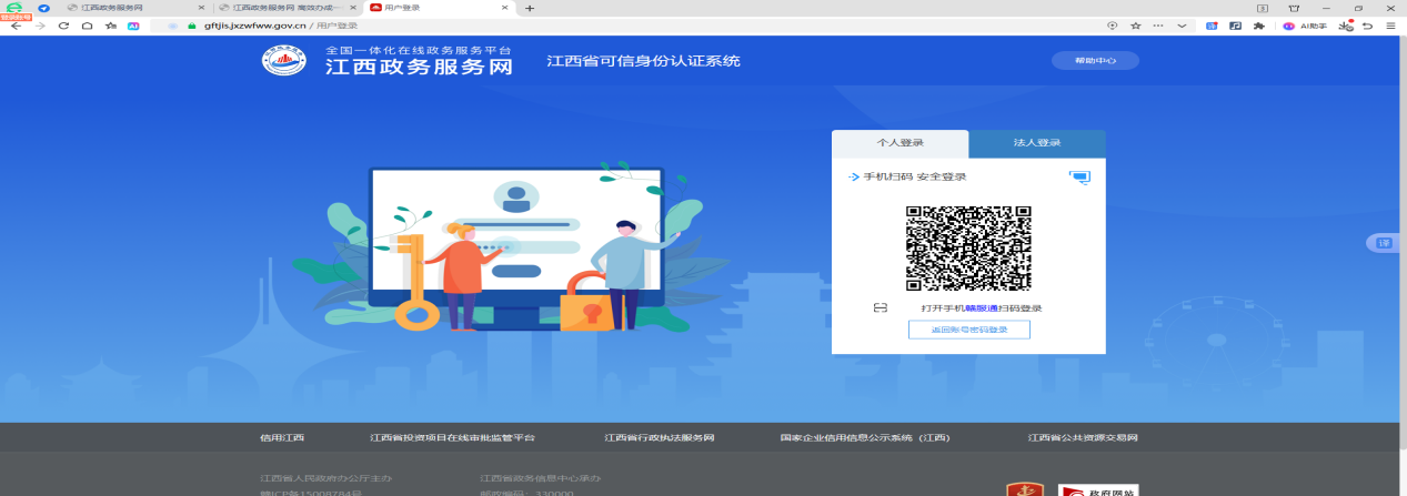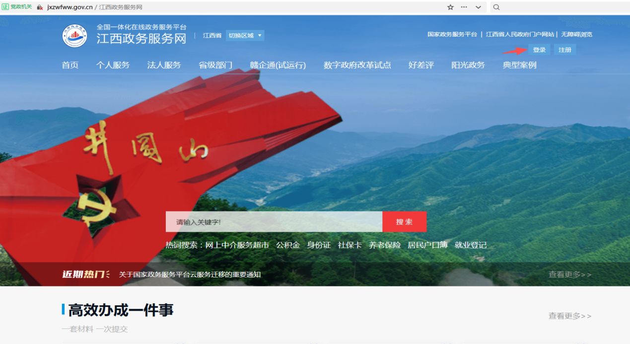 1.登录“江西省政务服务网”(https://www.jxzwfww.gov.cn/)。