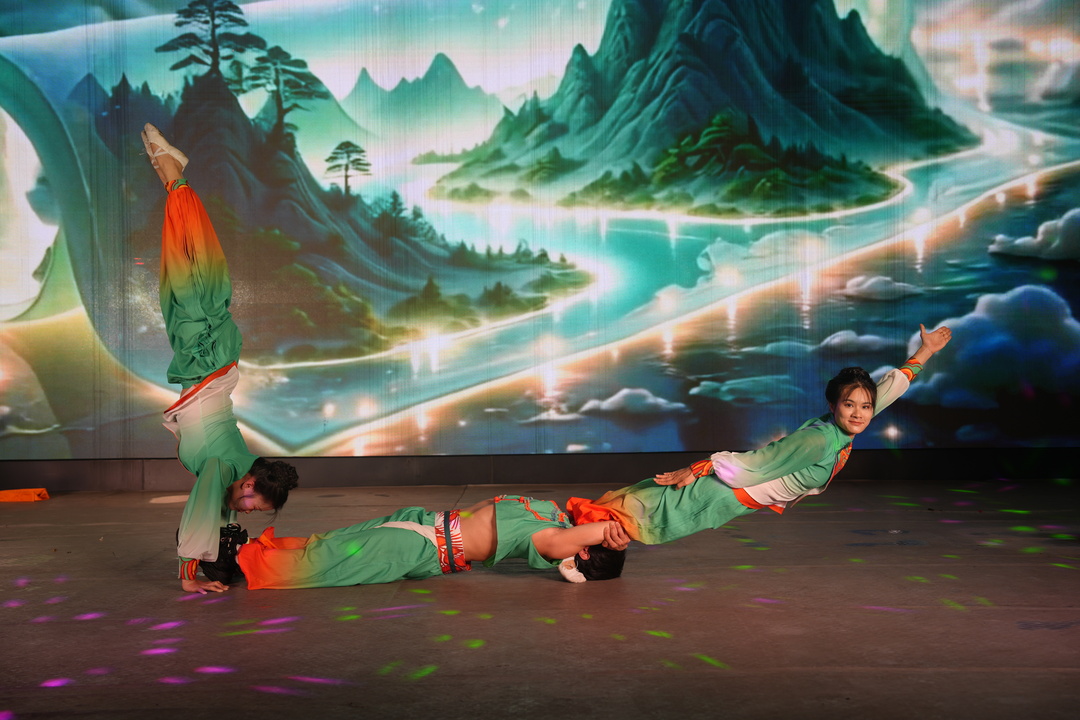 夜幕降临,古城精彩持续升级,畲族主题文艺晚会精彩上演,为现场观众带来了一场视听盛宴。灵动优美的彩带舞,舞姿曼妙、色彩斑斓,展现了畲族姑娘的灵动柔美和畲族人民对美好生活的向往;惊险刺激的杂技表演,引得现场观众阵阵惊呼;变幻莫测的魔术表演,充满了神秘感,让观众目不暇接;T台秀场上,身着各式畲族服饰的表演者款款走来,将畲族服饰的精美纹样与民族韵味展现得淋漓尽致;互动环节更点燃了现场气氛,掌声、欢呼声此起彼伏;情景表演以畲族婚俗为载体,生动还原畲族人民的生活图景,传递出畲族文化的深厚底蕴与人文情怀。
